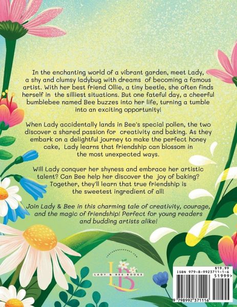 In the enchanting world of a vibrant garden, meet Lady, a shy and clumsy ladybug with dreams of becoming a famous artist. With her best friend Ollie, a tiny beetle, she often finds herself in the silliest situations. But one fateful day, a cheerful bumblebee named Bee buzzes into her life, turning a tumble into an exciting opportunity! When Lady accidentally lands in Bee's special pollen, the two discover a shared passion for creativity and baking. As they embark on a delightful journey to make the perfect honey cake, Lady learns that friendship can blossom in the most unexpected ways. Will Lady conquer her shyness and embrace her artistic talent? Can Bee help her discover the joy of baking? Together, they'll learn that true friendship is the sweetest ingredient of all! Join Lady & Bee in this charming tale of creativity, courage, and the magic of friendship! Perfect for young readers and budding artists alike!