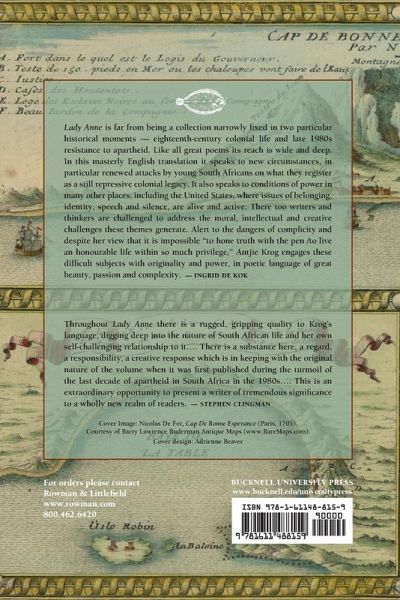 This is the first English translation of an award winning book published in Afrikaans in 1989. It engages critically and creatively with a key moment of colonial history—the time Lady Anne Barnard spent at the Cape of Good Hope, from 1797 to 1802. Antjie Krog powerfully brings together the historical and the poetic in a turbulent South Africa.