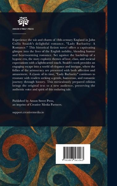 Experience the wit and charm of 18th-century England in John Collis Snaith's delightful romance, "Lady Barbarity: A Romance." This historical fiction novel offers a captivating glimpse into the lives of the English nobility, blending humor and heartwarming romance. Set against the backdrop of a bygone era, the story explores themes of love, class, and societal expectations with a lighthearted touch. Snaith's work provides an engaging escape into a world of elegance and intrigue, where the follies of the aristocracy are presented with both affection and amusement. A classic of its time, "Lady Barbarity" continues to resonate with readers seeking a gentle, humorous, and romantic journey through history. This meticulously prepared edition brings the original text to a new audience, preserving the authentic voice and spirit of this enduring tale. This work has been selected by scholars as being culturally important, and is part of the knowledge base of civilization as we know it. This work is in the public domain in the United States of America, and possibly other nations. Within the United States, you may freely copy and distribute this work, as no entity (individual or corporate) has a copyright on the body of the work. Scholars believe, and we concur, that this work is important enough to be preserved, reproduced, and made generally available to the public. We appreciate your support of the preservation process, and thank you for being an important part of keeping this knowledge alive and relevant.