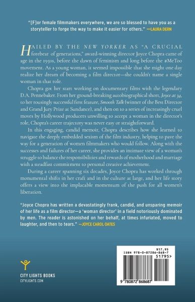 An intimate account of a seminal filmmaker’s development—as a creator and as a woman—both in art and in life. "Joyce Chopra, what a gift of an extraordinary filmmaker you are, and one of our great pioneers who forged a very difficult path. And for female filmmakers everywhere, we are so blessed to have you as a storyteller to forge the way to make it easier for others."—Laura Dern, actor Hailed by the New Yorker as “a crucial forebear of generations,” award–winning director Joyce Chopra came of age in the 1950s, prior to the dawn of feminism, and long before the #MeToo movement. As a young woman, it seemed impossible that she might one day realize her dream of becoming a film director—she couldn’t name a single woman in that role. But with her desire fueled by a stay in Paris during the heady beginnings of the French New Wave, she was determined to find a way. Chopra got her start making documentary films with the legendary D.A. Pennebaker. From her ground-breaking autobiographical short, Joyce at 34 (which was acquired for NY MoMA’S permanent collection), to her rousingly successful first feature, Smooth Talk (winner of the Best Director and Grand Jury Prize at Sundance in 1985), to a series of increasingly cruel moves by Hollywood producers unwilling to accept a woman in the director’s role, Chopra’s career trajectory was never easy or straightforward. In this engaging, candid memoir, Chopra describes how she learned to navigate the deeply embedded sexism of the film industry, helping to pave the way for a generation of women filmmakers who would come after her. She shares stories of her bruising encounters with Harvey Weinstein and Sydney Pollack, her experience directing Diane Keaton, Treat Williams, and a host of other actors, as well as her deep friendships with Gene Wilder, Arthur Miller, and Laura Dern. Along with the successes and failures of her career, she provides an intimate view of a woman’s struggle to balance the responsibilities and rewards of motherhood and marriage with a steadfast commitment to personal creative achievement. During a career spanning six decades, Joyce Chopra has worked through monumental shifts in her craft and in the culture at large, and the span of her life story offers a view into the implacable momentum of the push for all womens’ liberation. "Joyce Chopra has written a devastatingly frank, candid, and unsparing memoir of her life as a film director—a 'woman director' in a field notoriously dominated by men. The reader is astonished on her behalf, at times infuriated, moved to laughter, and then to tears. Lady Director: Adventures in Hollywood, Television, and Beyond is one of its kind—highly recommended." —Joyce Carol Oates, author of "Where Are You Going, Where Have You Been?"