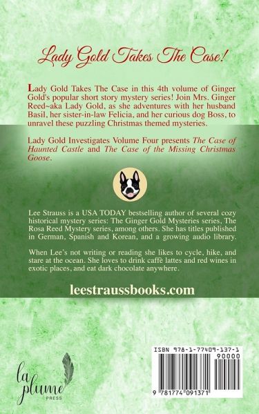 Lady Gold Takes The Case in this 4th volume of Ginger Gold's popular short story mystery series! Join Mrs. Ginger Reed~aka Lady Gold, as she adventures with her husband Basil, her sister-in-law Felicia, and her curious dog Boss, to unravel these puzzling Christmas themed mysteries. Lady Gold Investigates Volume Four presents The Case of Haunted Castle and The Case of the Missing Christmas Goose. A companion series to Ginger Gold Mysteries, each volume is approximately 20 thousand words or 90 pages. A bite size read perfect for a transit commute home, time spent waiting at an appointment, or to settle into sleep at night. Get your coffee, tea or glass of wine and snuggle in!