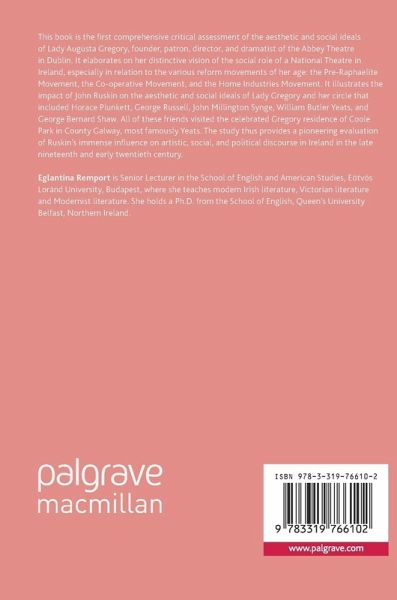 This book is the first comprehensive critical assessment of the aesthetic and social ideals of Lady Augusta Gregory, founder, patron, director, and dramatist of the Abbey Theatre in Dublin. It elaborates on her distinctive vision of the social role of a National Theatre in Ireland, especially in relation to the various reform movements of her age: the Pre-Raphaelite Movement, the Co-operative Movement, and the Home Industries Movement. It illustrates the impact of John Ruskin on the aesthetic and social ideals of Lady Gregory and her circle that included Horace Plunkett, George Russell, John Millington Synge, William Butler Yeats, and George Bernard Shaw. All of these friends visited the celebrated Gregory residence of Coole Park in Country Galway, most famously Yeats. The study thus provides a pioneering evaluation of Ruskin's immense influence on artistic, social, and political discourse in Ireland in the late nineteenth and early twentieth century.