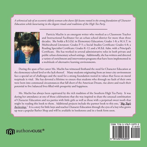 A whimsical tale of an eccentric elderly woman who shares life lessons rooted in the strong foundation of Character Education while luxuriating in the elegant rituals and traditions of the High Tea Party.