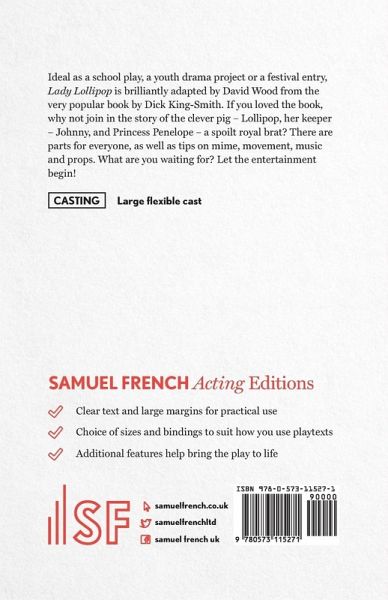 Ideal as a school play, a youth drama project or a festival entry, Lady Lollipop is brilliantly adapted by David Wood from the very popular book by Dick King-Smith. If you loved the book, why not join in the story of the clever pig - Lollipop, her keeper - Johnny, and Princess Penelope - a spoilt royal brat? There are parts for everyone, as well as tips on mime, movement, music and props. What are you waiting for? Let the entertainment begin!