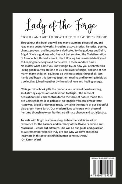 Throughout this book you will see many stunning pieces of art, and read many beautiful works, including essays, stories, histories, poems, chants, prayers, and incantations dedicated to the goddess and Saint, Brigid. She is a goddess who has not just survived the Christianisation of Europe, but thrived since it. She was beloved that she even got her own church and following dedicated to her, the Brigandine sect, that was only up until recently still recognized by the church. Her following has remained dedicated to keeping her energy and flame alive in these modern times. No matter what name you know Brigid by, or how you celebrate this loving goddess, you are one of us, a follower of Brigid, and one of her many, many children. So, let us do the most Brigid-thing of all, join hands and begin this journey together, reading and honoring Brigid as a collective, joined together by threads of love and healing energy. "This germinal book gifts the reader a vast array of heartwarming, soul-stirring expressions of devotion to Brigid. The sense of dedication from each contributor to the force of nature that is this pre-Celtic goddess is so palpable, so tangible you can almost taste its power. Brigid's relevance today is vital to the future of our beautiful blue-green home Earth. Our modern lives converge with those of her time though now our battles are climate change and social justice. To walk with Brigid is a brave step, to hear her call is an act of reverence for the balance and harmony of the Divine Feminine and Masculine - equal but different. She will be our guide and guardian as we remember who we truly are and why we have chosen to incarnate in this pivotal shift in human consciousness." -Dr. Karen Ward