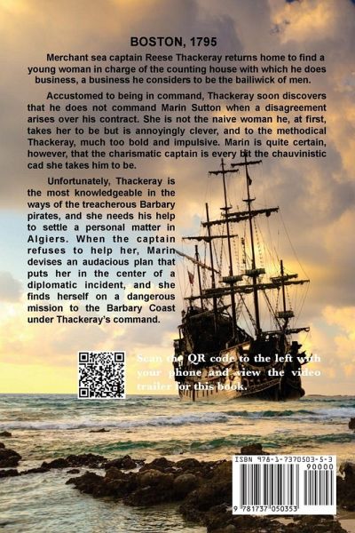 BOSTON 1795--Merchant sea captain Reese Thackeray returns home to find that a young woman is in charge of the counting house with which he does business, a business he considers to be the bailiwick of men. Accustomed to being in command, Thackeray soon discovers that he does not command Marin Sutton when there is a disagreement over his contract. The tall, slender, green-eyed beauty is not the naive woman he, at first, takes her to be but is annoyingly smart, clever, and, to the methodical Thackeray, much too bold. Marin is quite certain, however, that the charismatic, darkly handsome captain is every bit the condescending, chauvinistic cad she takes him to be. Unfortunately, Thackeray is the most knowledgeable in the ways of the treacherous Barbary pirates, and she needs his help to settle a personal matter in Algiers. When the captain refuses to aid her, Marin devises an audacious plan that lands her in the center of a diplomatic incident and finds her on a dangerous mission to the Barbary Coast under Thackeray's command.