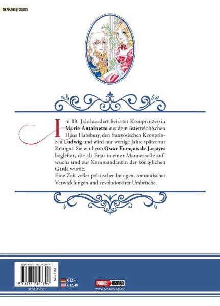 Lady Oscar: Die Rosen von Versailles entführt dich in das prunkvolle und turbulente Frankreich des 18. Jahrhunderts. Im Mittelpunkt steht die mutige und charismatische Oscar François de Jarjayes, die als Frau in einer Männerrolle aufwächst und zur Kommandantin der königlichen Garde wird. Begleite Oscar und ihre Kameraden durch eine Zeit voller politischer Intrigen, romantischer Verwicklungen und revolutionärer Umbrüche. Tauche ein in ein episches Drama, das historische Ereignisse und persönliche Schicksale meisterhaft verwebt. Das erwartet dich in Band 1: Im 18. Jahrhundert heiratet Kronprinzessin Marie-Antoinette aus dem österreichischen Haus Habsburg den französischen Kronprinzen Ludwig und wird nur wenige Jahre später zur Königin. Sie wird von Oscar François de Jarjayes begleitet, die als Frau in einer Männerrolle aufwuchs und zur Kommandantin der königlichen Garde wurde.Eine Zeit voller politischer Intrigen, romantischer Verwicklungen und revolutionärer Umbruche.Ein Klassiker, der einen nie da gewesenen Boom auslöste und noch immer Menschen auf der ganzen Welt fasziniert! Lasst euch von der emotionalen Geschichte in Versailles und den brillanten Charakteren mitreißen! Genießt eine "Liebe", die über den sozialen Stand hinausgeht die trotz aller Widrigkeiten nicht aufgibt!