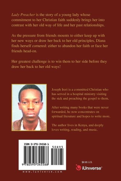 Lady Preacher is the story of a young lady whose commitment to her Christian faith suddenly brings her into contrast with her old way of life and her past relationships. As the pressure from friends mounts to either keep up with her new ways or draw her back to her old principles, Diana finds herself cornered: either to abandon her faith or face her friends head-on. Her greatest challenge is to win them to her side before they draw her back to her old ways!