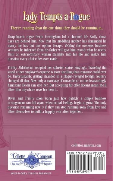 He'd wanted a mild flirtation... Instead, he got a marriage of convenience. They're running from the one thing they should be running to... Unapologetic rogue Devin Everingham led a charmed life. Sadly, those days are behind him. Now that his meddling mother has demanded he marry, he has but one option. Escape. Visiting the overseas business ventures he inherited from his father will give him exactly what he needs. Until an extraordinary woman stumbles into his life and makes him question every choice he's ever made... Trinity Ablethorne accepted her spinster status long ago. Traveling the world at her employer's expense is more thrilling than romance could ever be. Unfortunately, getting stranded in a plague-ravaged foreign country changed all that. Now, only a marriage of convenience to the devastatingly handsome Devin can save her. But accepting his offer doesn't mean she'll allow him anywhere near her heart... Devin and Trinity soon learn just how quickly a simple business arrangement can fall apart when actual feelings begin to grow. The only question remaining now is if they can stop running away from love and allow themselves to build a happily ever after together...