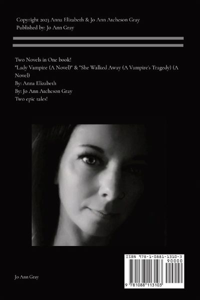 2 Novels in One book! "Lady Vampire (A Novel)" & "She Walked Away (A Vampire's Tragedy) (A Novel)" By: Anna Elizabeth By: Jo Ann Atcheson Gray Two epic tales!