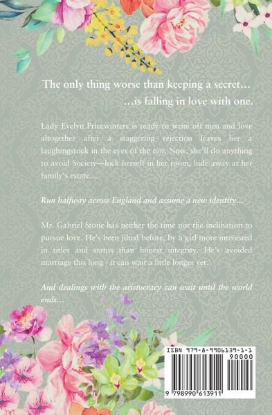 The only thing worse than keeping a secret... ...is falling in love with one. Lady Evelyn Pricewinters is ready to write off men and love altogether after a staggering rejection leaves her a laughingstock in the eyes of the ton. Now, she'll do anything to avoid Society-lock herself in her room, hide away at her family's estate... Run halfway across England and assume a new identity... Mr. Gabriel Stone has neither the time nor the inclination to pursue love. He's been jilted before, by a girl more interested in titles and status than honest integrity. He's avoided marriage this long - it can wait a little longer yet. And dealings with the aristocracy can wait until the world ends...