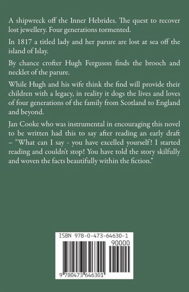 A shipwreck off the Inner Hebrides. The quest to recover lost jewellery. Four generations tormented. In 1817 a titled lady and her parure are lost at sea off the island of Islay. By chance crofter Hugh Ferguson finds the brooch and necklet of the parure. While Hugh and his wife think the find will provide their children with a legacy, in reality it dogs the lives and loves of four generations of the family from Scotland to England and beyond. Jan Cooke who was instrumental in encouraging this novel to be written had this to say after reading an early draft - "What can I say - you have excelled yourself! I started reading and couldn't stop! You have told the story skilfully and woven the facts beautifully within the fiction."