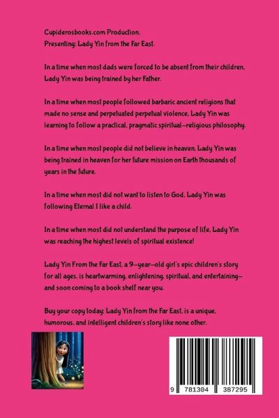 Cupiderosbooks.com Production. Presenting: Lady Yin From The Far East. In a time when most dads where forced to be absent from their children, Lady Yin was being trained by her Father. In a time when most people followed barbaric ancient religions that made no sense and perpetuated perpetual violence, Lady Yin was learning to follow a practical, pragmatic spiritual-religious philosophy. In a time when most people did not believe in Heaven, Lady Yin was being trained in Heaven for her future mission on Earth thousands of years in the future. In a time when most did not want to listen to God, Lady Yin was following Eternal I like a child. In a time when most did not understand the purpose of life, Lady Yin was reaching the highest levels of spiritual existence! Lady Yin From the Far East, a 9-year-old girl's Epic Children's Story for all ages, is heartwarming, enlightening, spiritual, and entertaining coming to a bookshelf near you. Buy your copy today: Lady Yin From the Far East, a humorous, intelligent children's story like none other. Click the Link . . . What are you waiting for? Buy Today!