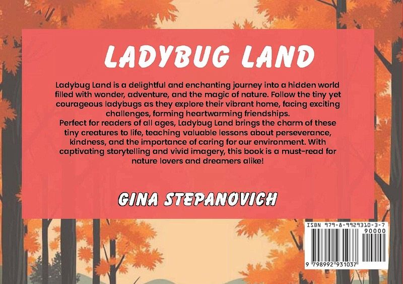 Step into the enchanting world of Ladybug Land, a heartwarming children's book that celebrates the beauty of nature, the magic of the changing seasons, and the tiny wonders that surround us. Inspired by a scenic walk through the woods, author Gina Stepanovich takes readers on a poetic journey filled with vibrant imagery, playful rhymes, and delightful surprises. Follow along as the crisp autumn air brings a flurry of colors, rustling leaves, and an unexpected gathering of ladybugs-each unique and full of charm. With lyrical storytelling and captivating illustrations, this book invites young readers and their families to appreciate the wonders of the outdoors and the joy of discovery. Perfect for bedtime reading, classroom exploration, or a cozy afternoon story time, Ladybug Land is a must-have for children who love nature, adventure, and a touch of whimsy.