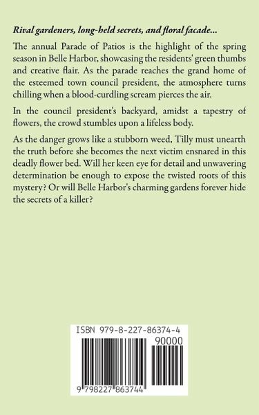 Rival gardeners, long-held secrets, and floral facade... The annual Parade of Patios is the highlight of the spring season in Belle Harbor, showcasing the residents' green thumbs and creative flair. As the parade reaches the grand home of the esteemed town council president, the atmosphere turns chilling when a blood-curdling scream pierces the air. In the council president's backyard, amidst a tapestry of flowers, the crowd stumbles upon a lifeless body. As the danger grows like a stubborn weed, Tilly must unearth the truth before she becomes the next victim ensnared in this deadly flower bed. Will her keen eye for detail and unwavering determination be enough to expose the twisted roots of this mystery? Or will Belle Harbor's charming gardens forever hide the secrets of a killer?