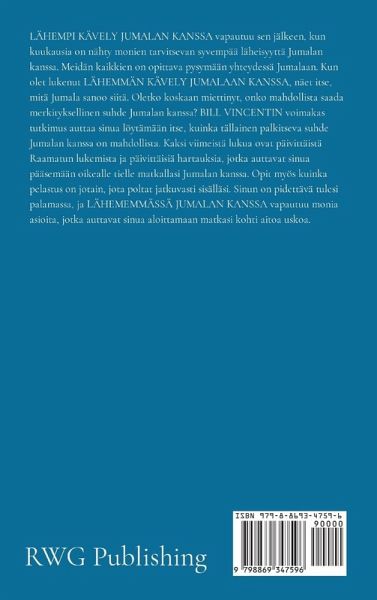 LÄHEMPI KÄVELY JUMALAN KANSSA vapautuu sen jälkeen, kun kuukausia on nähty monien tarvitsevan syvempää läheisyyttä Jumalan kanssa. Meidän kaikkien on opittava pysymään yhteydessä Jumalaan. Kun olet lukenut LÄHEMMÄN KÄVELY JUMALAAN KANSSA, näet itse, mitä Jumala sanoo siitä. Oletko koskaan miettinyt, onko mahdollista saada merkityksellinen suhde Jumalan kanssa? BILL VINCENTIN voimakas tutkimus auttaa sinua löytämään itse, kuinka tällainen palkitseva suhde Jumalan kanssa on mahdollista. Kaksi viimeistä lukua ovat päivittäistä Raamatun lukemista ja päivittäisiä hartauksia, jotka auttavat sinua pääsemään oikealle tielle matkallasi Jumalan kanssa. Opit myös kuinka pelastus on jotain, jota poltat jatkuvasti sisälläsi. Sinun on pidettävä tulesi palamassa, ja LÄHEMEMMÄSSÄ JUMALAN KANSSA vapautuu monia asioita, jotka auttavat sinua aloittamaan matkasi kohti aitoa uskoa.