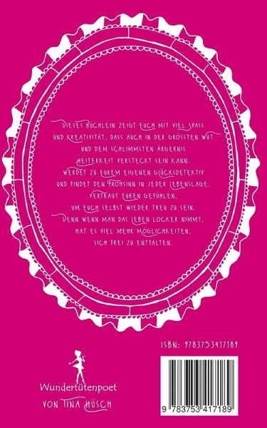 Dieses Büchlein zeigt Euch mit viel Spaß und Kreativität, dass auch in der größten Wut und dem schlimmsten Ärgernis Heiterkeit versteckt sein kann.Werdet zu Eurem eigenen Glücksdetektiv und findet den Frohsinn in jeder Lebenslage.Vertraut Euren Gefühlen, um Euch selbst wieder treu zu sein.Denn wenn man das Leben locker nimmt, hat es viel mehr Möglichkeiten, sich frei zu entfalten.