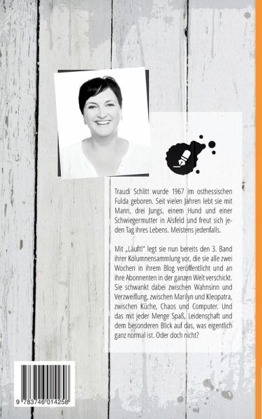 Mit "Läuft!" legt Traudi Schlitt nun bereits den 3. Band ihrer Kolumnensammlung vor, die sie alle zwei Wochen in ihrem Blog veröffentlicht und an ihre Abonnenten in der ganzen Welt verschickt. Sie schwankt dabei zwischen Wahnsinn und Verzweiflung, zwischen Marilyn und Kleopatra, zwischen Küche, Chaos und Computer. Und das mit jeder Menge Spaß, Leidenschaft und dem besonderen Blick auf, das, was eigentlich ganz normal ist. Oder doch nicht?