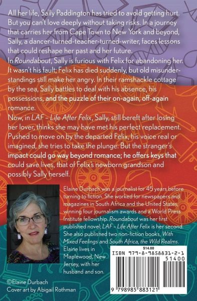 All her life, Sally Paddington has tried to avoid getting hurt. But you can't love deeply without taking risks. In a journey that carries her from Cape Town to New York and beyond, Sally, a dancer-turned-teacher-turned writer, faces lessons that could reshape her past and her future. In Roundabout, Sally is furious with Felix for abandoning her. It wasn't his fault, Felix has died suddenly, but old misunderstandings still make her angry. In their ramshackle cottage by the sea, Sally battles to deal with his absence, his possessions, and the puzzle of their on-again, off-again romance. Now, in LAF - Life After Felix, Sally, still bereft after losing her lover, thinks she may have met his perfect replacement. Pushed to move on by the departed Felix, his voice real or imagined, she tries to take the plunge. But the stranger's impact could go way beyond romance. He offers keys that could save lives, that of Felix's newborn grandson and possibly Sally herself.
