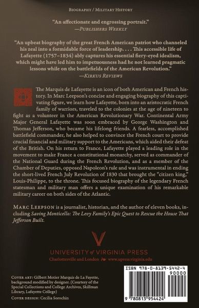 Assessing the legendary Frenchman and his remarkable military career on both sides of the Atlantic The Marquis de Lafayette is an icon of both American and French history. In Marc Leepson's concise and engaging biography of this captivating figure, we learn how Lafayette, born into an aristocratic French family of warriors, traveled to the colonies at the age of nineteen to fight as a volunteer in the American Revolutionary War. Continental Army Major General Lafayette was soon embraced by George Washington and Thomas Jefferson, who became his lifelong friends. A fearless, accomplished battlefield commander, he also helped to convince the French court to provide crucial financial and military support to the Americans, which aided their defeat of the British. On his return to France, Lafayette played a leading role in the movement to make France a constitutional monarchy, served as commander of the National Guard during the French Revolution, and as a member of the Chamber of Deputies, opposed Napoleon's rule and was instrumental in ending the short-lived French July Revolution of 1830 that brought the "citizen king," Louis-Philippe, to the throne. This focused biography of the legendary French statesman and military man offers a unique examination of his remarkable military career on both sides of the Atlantic.