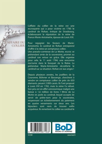 L'affaire du collier de la reine est une escroquerie qui a pour victime en 1785 le cardinal de Rohan, évêque de Strasbourg, éclaboussant la réputation de la reine de France Marie-Antoinette, épouse de Louis XVI.Pour regagner les faveurs de Marie-Antoinette, le cardinal de Rohan entreprend d'offrir à la reine un somptueux collier.Une pseudo-comtesse de La Motte, escroc se prétendant amie de la souveraine, promet au cardinal son retour en grâce. Elle organise pour cela, le 11 août 1784, une rencontre nocturne dans le bosquet de la Reine. La prétendue Marie-Antoinette réconforte le cardinal sur sa situation. Rohan est aux anges !Depuis plusieurs années, les joailliers de la Couronne, Böhmer et Bassenge, cherchent à vendre un somptueux collier de près de 650 diamants, pesant 2 800 carats. Ils l'ont proposé à Louis XVI en 1782, mais la reine l'a refusé. Son prix est en effet astronomique malgré une baisse à 1,6 million de livres ! Mme de La Motte en parle au cardinal, lequel accepte de servir de prête-nom pour la souveraine, moyennant un échelonnement du paiement en quatre versements sur deux ans. Les bijoutiers sont ravis de trouver enfin acquéreur. Ils remettent le collier au cardinal le 1er février 1785, lequel le donne à Mme de La Motte, qui disparaît aussitôt avec ses complices. Un scandale d'État commence..
