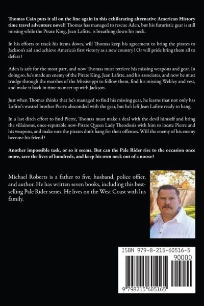 Thomas Cain puts it all on the line again in this exhilarating alternative American History time travel adventure novel! Thomas has managed to rescue Aden, but his futuristic gear is still missing while the Pirate King, Jean Lafitte, is breathing down his neck. In his efforts to track his items down, will Thomas keep his agreement to bring the pirates to Jackson's aid and achieve America's first victory as a new country? Or will pride bring them all to defeat? Aden is safe for the most part, and now Thomas must retrieve his missing weapons and gear. In doing so, he's made an enemy of the Pirate King, Jean Lafitte, and his associates, and now he must trudge through the marshes of the Mississippi to follow them, find his missing Webley and vest, and make it back in time to meet up with Jackson. Just when Thomas thinks that he's managed to find his missing gear, he learns that not only has Lafitte's wastrel brother Pierre absconded with the gear, but he's left Jean Lafitte ready to hang. In a last ditch effort to find Pierre, Thomas must make a deal with the devil himself and bring the villainous, once-reputable now-Pirate Queen Lady Theodosia with him to locate Pierre and his weapons, and make sure the pirates don't hang for their offenses. Will the enemy of his enemy become his friend? Another impossible task, or so it seems. But can the Pale Rider rise to the occasion once more, save the lives of hundreds, and keep his own neck out of a noose? Lafitte's Chance is the fifth book in the Pale Rider series, an alternate American Historical Military retelling, and is the next book in the trilogy set that focuses on the War of 1812. If you like American historical fiction, time travel, and alternate history, then discover Lafitte's Chance today! ** it is recommended that the books are read in order! **