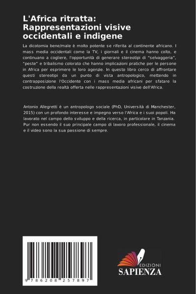 La dicotomia bene/male è molto potente se riferita al continente africano. I mass media occidentali come la TV, i giornali e il cinema hanno colto, e continuano a cogliere, l'opportunità di generare stereotipi di "selvaggeria", "peste" e tribalismo colorato che hanno implicazioni pratiche per le persone in Africa per esprimere le loro agenzie. In questo libro cerco di affrontare questi stereotipi da un punto di vista antropologico, mettendo in contrapposizione l'Occidente con i mass media africani per sfatare la costruzione della realtà offerta nelle rappresentazioni visive dell'Africa.