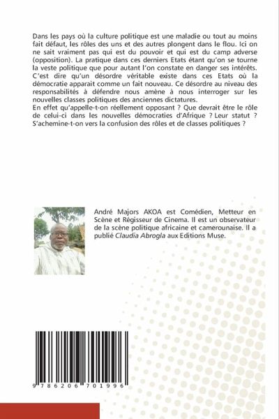 Dans les pays où la culture politique est une maladie ou tout au moins fait défaut, les rôles des uns et des autres plongent dans le flou. Ici on ne sait vraiment pas qui est du pouvoir et qui est du camp adverse (opposition). La pratique dans ces derniers Etats étant qu'on se tourne la veste politique que pour autant l'on constate en danger ses intérêts. C'est dire qu'un désordre véritable existe dans ces Etats où la démocratie apparait comme un fait nouveau. Ce désordre au niveau des responsabilités à défendre nous amène à nous interroger sur les nouvelles classes politiques des anciennes dictatures. En effet qu'appelle-t-on réellement opposant ? Que devrait être le rôle de celui-ci dans les nouvelles démocraties d'Afrique ? Leur statut ? S'achemine-t-on vers la confusion des rôles et de classes politiques ?