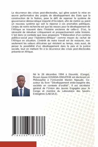 La récurrence des crises post-électorales, qui gêne autant la mise en oeuvre performative des projets de développement des Etats que la construction de la Nation, pose le défi de repenser le système de gouvernance démocratique importé d'Occident, afin de mettre au point un nouveau système qui soit la réponse à ces anomalies politiques. L'enjeu de notre recherche est que les ressors pour le développement de l'Afrique se trouvent dans l'histoire ancienne de celle-ci. D'où, la nécessité de réévaluer critiquement et prospectivement cette histoire. C'est dans ce contexte que nous proposons ''l'élaboration d'un contenu politico-social pour l'épistémo-éthique'' comme moyen du rachat de l'Afrique en situation. L'intérêt de notre travail est de restaurer, non seulement les valeurs africaines qui résistent au temps, mais aussi, de penser la possibilité d'un développement dans la paix et la justice sociale, tout en mettant fin à la récurrence des crises post-électorales présente en Afrique.