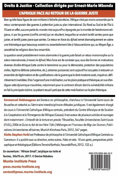 Les textes re¿unis ici se de¿ploient principalement sur quatre registres, historique, philosophique, juridique et the¿ologique. Leur imbrication, lie¿e ä l'histoire et ä la nature plurielle et transdisciplinaire des « justifications » de la guerre, n'a gue¿re permis un ordonnancement rigoureusement logique de leur pre¿sentation. Une appre¿hension et une ambition communes les traversent cependant. D'une part, la peur de voir l'Afrique davantage victime de guerres de pre¿dation sous le couvert de « justifications » humanitaires ou e¿thiques. D'autre part, l'ambition de montrer, pour des raisons et selon des modalite¿s propres ä chaque auteur, l'impossibilite¿ de justifier, au plan moral, une entreprise aussi porteuse d'atrocite¿s que la guerre.