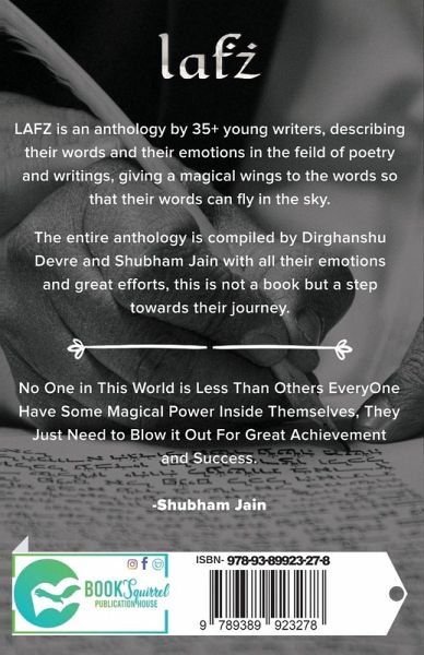It is the book which has nice blend of shayris, poems, and poetic story. It'll take you from the tunnel of fictious and real life experiencing stories. The piece which book contains will force you to imagine and to live in it. The book called "LAFZ