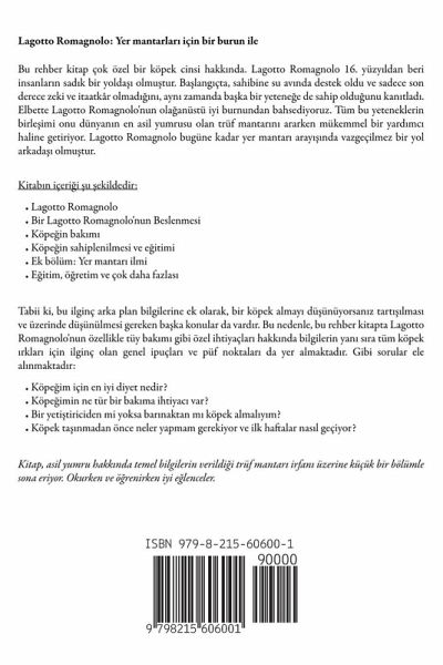 Lagotto Romagnolo: Yer mantarlar¿ için bir burun ile Bu rehber kitap çok özel bir köpek cinsi hakk¿nda. Lagotto Romagnolo 16. yüzy¿ldan beri insanlar¿n sad¿k bir yoldä¿ olmu¿tur. Bälang¿çta, sahibine su av¿nda destek oldu ve sadece son derece zeki ve itaatkâr olmad¿¿¿n¿, ayn¿ zamanda bäka bir yetene¿e de sahip oldu¿unu kan¿tlad¿. Elbette Lagotto Romagnolo'nun oläanüstü iyi burnundan bahsediyoruz. Tüm bu yeteneklerin birle¿imi onu dünyan¿n en asil yumrusu olan trüf mantar¿n¿ ararken mükemmel bir yard¿mc¿ haline getiriyor. Lagotto Romagnolo bugüne kadar yer mantar¿ aray¿¿¿nda vazgeçilmez bir yol arkadä¿ olmu¿tur. Kitab¿n içeri¿i ¿u ¿ekildedir:Lagotto Romagnolo Bir Lagotto Romagnolo'nun Beslenmesi Köpe¿in bak¿m¿ Köpe¿in sahiplenilmesi ve e¿itimi Ek bölüm: Yer mantar¿ ilmi E¿itim, ö¿retim ve çok daha fazlas¿ Tabii ki, bu ilginç arka plan bilgilerine ek olarak, bir köpek almay¿ dü¿ünüyorsan¿z tart¿¿¿lmas¿ ve üzerinde dü¿ünülmesi gereken bäka konular da vard¿r. Bu nedenle, bu rehber kitapta Lagotto Romagnolo'nun özellikle tüy bak¿m¿ gibi özel ihtiyaçlar¿ hakk¿nda bilgilerin yan¿ s¿ra tüm köpek ¿rklar¿ için ilginç olan genel ipuçlar¿ ve püf noktalar¿ da yer almaktad¿r. Gibi sorular ele al¿nmaktad¿r:Köpe¿im için en iyi diyet nedir? Köpe¿imin ne tür bir bak¿ma ihtiyac¿ var? Bir yeti¿tiriciden mi yoksa bar¿naktan m¿ köpek almal¿y¿m? Köpek tä¿nmadan önce neler yapmam gerekiyor ve ilk haftalar nas¿l geçiyor? Kitap, asil yumru hakk¿nda temel bilgilerin verildi¿i trüf mantar¿ irfan¿ üzerine küçük bir bölümle sona eriyor. Okurken ve ö¿renirken iyi e¿lenceler.