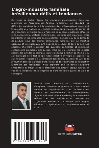Ce recueil de textes résume les principales préoccupations liées aux problèmes de l'agro-industrie familiale brésilienne, en abordant les différentes questions liées à la production. Les préoccupations concernent la durabilité des maillons des chaînes impliquées, les formes de gestion et de production, les limites dues à l'absence de politiques publiques efficaces et le manque de technologie et d'innovation. Les défis sont importants, mais les attentes et les tendances sont excellentes. Compte tenu de la demande de produits issus des chaînes alimentaires humaines sur les marchés nationaux et internationaux, qu'il s'agisse de produits de base ou non. Les chapitres cherchent à exposer des questions pertinentes et complexes concernant la production et la gestion, mais aussi à énumérer les impacts positifs des activités concernées, qu'ils soient dus à l'action de l'homme ou aux avantages de la technologie. Cette collection privilégie les aspects liés aux nouvelles réalités de la campagne brésilienne, du point de vue de la production dans les établissements ruraux et de l'importance de l'utilisation rationnelle des ressources. Nous espérons que ce travail soulignera l'importance du travail et de la production des acteurs sociaux ruraux, en vue de la durabilité, de la longévité et d'une meilleure qualité de vie à la campagne.