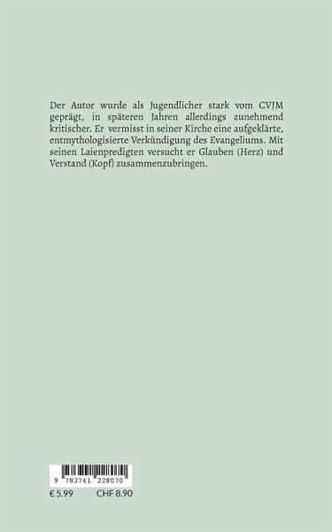 Der Autor wurde als Jugendlicher stark vom CVJM geprägt, in späteren Jahren allerdings zunehemd kritischer. Er vermisst in seiner Kirche eine aufgeklärte, entmythologisierte Verkündigung des Evangeliums. Mit seinen Laienpredigten versucht er Glauben (Herz) und Verstand (Kopf) zusammenzubringen.