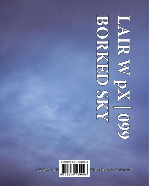 The sort of color study that results from color processing errors on cloud photos shot on a low battery. An altogether delightful and incorrect apprehension of the sky.