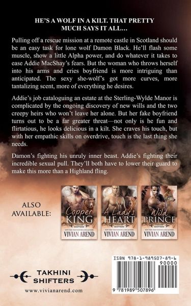 He's a wolf in a kilt. That pretty much says it all... Pulling off a rescue mission at a remote castle in Scotland should be an easy task for lone wolf Damon Black. He'll flash some muscle, show a little Alpha power, and do whatever it takes to ease Addie MacShay's fears. But the woman who throws herself into his arms and cries boyfriend is more intriguing than anticipated. The sexy she-wolf's got more curves, more tantalizing scent, more of everything he desires. Addie's job cataloguing an estate at the Sterling-Wylde Manor is complicated by the ongoing discovery of new wills and the two creepy heirs who won't leave her alone. But her fake boyfriend turns out to be a far greater threat-not only is he fun and flirtatious, he looks delicious in a kilt. She craves his touch, but with her empathic skills on overdrive, touch is the last thing she needs. Damon's fighting his unruly inner beast. Addie's fighting their incredible sexual pull. They'll both have to lower their guard to make this more than a Highland fling.