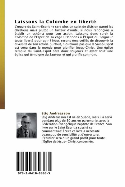 L uvre du Saint-Esprit ne sera plus un sujet de division parmi les chrétiens mais plutôt un facteur d unité, si nous renonçons à établir un schéma pour son action. Laissons donc sortir la Colombe de l Esprit de sa cage ! Donnons à l Esprit du Seigneur toute liberté pour agir ! Nous serons émerveillés de découvrir la diversité de son action. Surtout, n oublions pas que le Saint-Esprit est venu dans le monde pour glorifier Jésus-Christ. Une église remplie du Saint-Esprit sera donc toujours et avant tout une église qui témoigne du Sauveur et qui glorifie son nom.