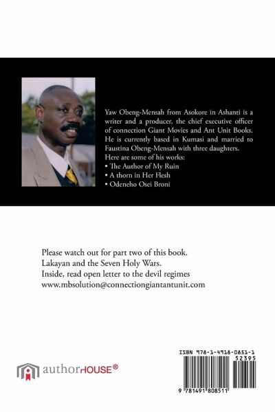 Please look for part two of this book Lakayan and the Seven Holy Wars. Inside, read open letter to the devil regimes www.mabsolution@connectiongiantantunit.com