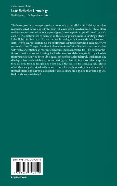 The book provides a comprehensive account of a tropical lake, Alchichica, considering that tropical limnology is by far less known and well-understood than temperate. Many of the well-known temperate limnology paradigms do not apply in tropical limnology, such as the 1ºC/m thermocline concept, or the role of phosphorous as a limiting nutrient. Lake Alchichica is - most likely - the best limnologically known Mexican lake up to date. Twenty years of continuous monitoring has led us to understand this deep, warm monomictic lake. The peculiar chemical composition of this saline lake - sodium-alkaline with a high concentration in magnesium waters, and groundwater-fed - led to the formation of its unique stromatolite ring that has become world-famous, studied by scientists from various countries. From a biological point of view, this relatively small maar lake displays a comparatively low species richness but surprisingly is plentiful in microendemic species for a recently-formed lake (13,000-6,300 years old, at the Late Pleistocene/Holocene Epoch), eleven of which already described, with more to come. Researchers and students interested in tropical limnology, extreme ecosystems, evolutionary biology, astrobiology, and microbiology will find this book a must-read.