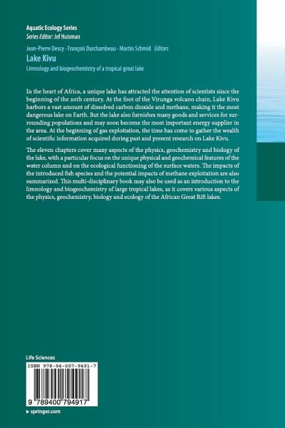 In the heart of Africa, a unique lake attracts the attention of scientists since the beginning of the 20th century. At the foot of the Virunga volcano chain, Lake Kivu harbors a vast amount of dissolved carbon dioxide and methane, making this lake the most dangerous lake on Earth. But the lake furnishes also many goods and services for surrounding populations and may soon become the most important energy supplier in the area. At the beginning of gas exploitation, the time has come for gathering the large amount of scientific information acquired during past and present research on Lake Kivu. The eleven chapters cover many aspects of the physics, geochemistry and biology of the lake, with a particular focus on the unique physical and geochemical features of the water column and on the ecological functioning of the surface waters. The impacts of the introduced fish species and the potential impacts of methane exploitation are also summarized. This multi-disciplinary book may also be used as an introduction to the limnology and biogeochemistry of large tropical lakes, as it covers various aspects of the physics, geochemistry, biology and ecology of the African Great Rift lakes.