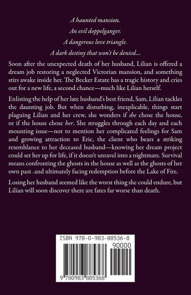 A haunted mansion. An evil doppelganger. A dangerous love triangle. A dark destiny that won't be denied... Soon after the unexpected death of her husband, Lilian is offered a dream job restoring a neglected Victorian mansion, and something stirs awake inside her. The Becker Estate has a tragic history and cries out for a new life, a second chance-much like Lilian herself. Enlisting the help of her late husband's best friend, Sam, Lilian tackles the daunting job. But when disturbing, inexplicable things start plaguing Lilian and her crew, she wonders if she chose the house, or if the house chose her. She struggles through each day and each mounting issue-not to mention her complicated feelings for Sam and growing attraction to Eric, the client who bears a striking resemblance to her deceased husband-knowing her dream project could set her up for life, if it doesn't unravel into a nightmare. Survival means confronting the ghosts in the house as well as the ghosts of her own past-and ultimately facing redemption before the Lake of Fire. Losing her husband seemed like the worst thing she could endure, but Lilian will soon discover there are fates far worse than death.