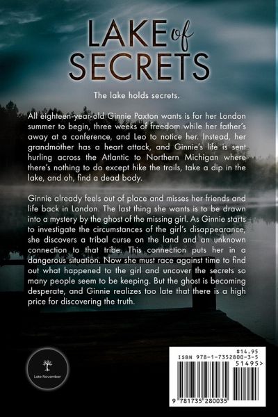 The lake holds secrets. All eighteen-year-old Ginnie Paxton wants is for her London summer to begin, three weeks of freedom while her father's away at a conference, and Leo to notice her. Instead, her grandmother has a heart attack, and Ginnie's life is sent hurling across the Atlantic to Northern Michigan where there's nothing to do except hike the trails, take a dip in the lake, and oh, find a dead body. Ginnie already feels out of place and misses her friends and life back in London. The last thing she wants is to be drawn into a mystery by the ghost of the missing girl. As Ginnie starts to investigate the circumstances of the girl's disappearance, she discovers a tribal curse on the land and an unknown connection to that tribe. This connection puts her in a dangerous situation. Now she must race against time to find out what happened to the girl and uncover the secrets so many people seem to be keeping. But the ghost is becoming desperate, and Ginnie realizes too late that there is a high price for discovering the truth.