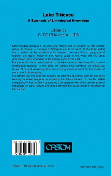 It is certain that this book will become the essential reference work for scientists wanting to make progress in revealing the lake's secrets. It can be stated unequivocally that this work constitutes a complete review of the present state of knowledge on Lake Titicaca and that it provides the latest results of research on this habitat.