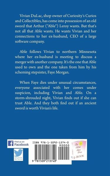 Vivian DuLac, shop owner of Curiosity's Curios and Collectibles, has come into possession of an old sword that Arthur ("Able") Leroy wants. But that's not all that Able wants. He wants Vivian and her connections to her ex-husband, CEO of a large software company. Able follows Vivian to northern Minnesota where her ex-husband is meeting to discuss a merger with another company. It's the one that Able used to own and the one taken from him by his scheming stepsister, Faye Morgan. When Faye dies under unusual circumstances, everyone associated with her comes under suspicion, including Vivian and Able. On a storm-shrouded night, Vivian finds out if she can trust Able. And they both find out if an ancient sword is worth Vivian's life.