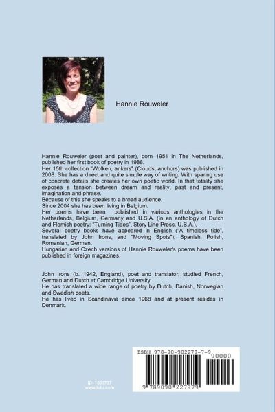 Hannie Rouweler (poet and painter), born 1951 in The Netherlands, published her first book of poetry in 1988. Her 15th collection "Wolken, ankers" (Clouds, anchors) was published in 2008. She has a direct and quite simple way of writing. With sparing use of concrete details she creates her own poetic world. In that totality she exposes a tension between dream and reality, past and present, imagination and phrase. Because of this she speaks to a broad audience.