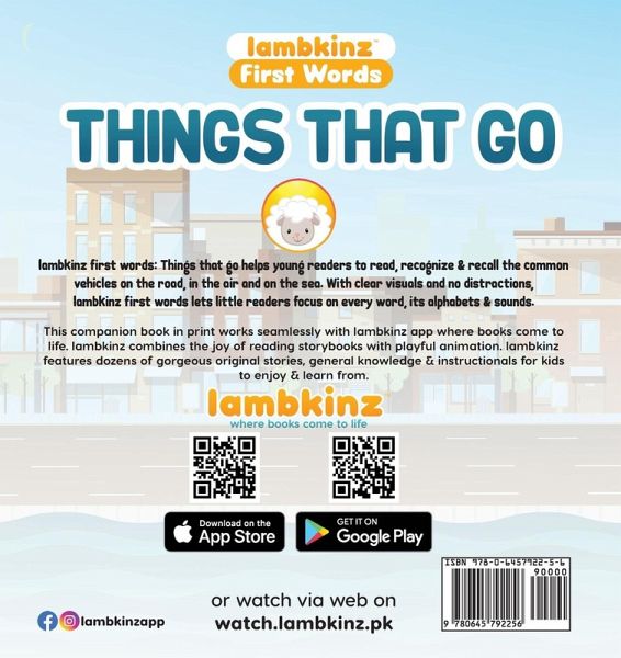 lambkinz first words is a book series for the toddlers learning their first words. This series features a set of 5 books that enables young learners to memorize their first words. lambkinz first words series enable readers to recognize, call and memorize objects and things around them in a number of settings. This book features all the different types of vehicles that kids see on the road, in the air and on the sea. With clear visuals and no distractions, lambkinz first works lets readers focus on every word, its alphabets & sounds. In both animation and print; first words is a great way to start young readers with object names.