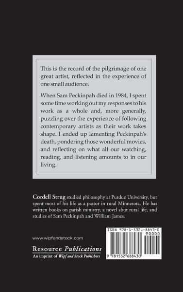 This is the record of the pilgrimage of one great artist, reflected in the experience of one small audience. When Sam Peckinpah died in 1984, I spent some time working out my responses to his work as a whole and, more generally, puzzling over the experience of following contemporary artists as their work takes shape. I ended up lamenting Peckinpah's death, pondering those wonderful movies, and reflecting on what all our watching, reading, and listening amounts to in our living.