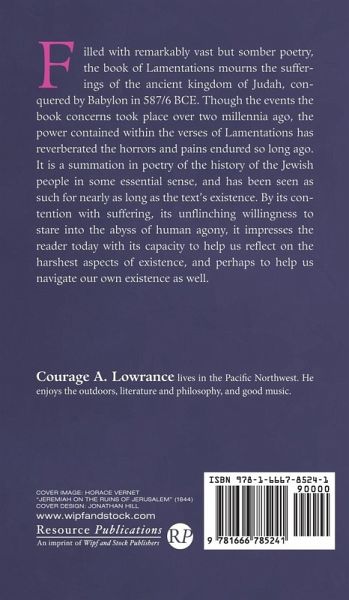 Filled with remarkably vast but somber poetry, the book of Lamentations mourns the sufferings of the ancient kingdom of Judah, conquered by Babylon in 587/6 BCE. Though the events the book concerns took place over two millennia ago, the power contained within the verses of Lamentations has reverberated the horrors and pains endured so long ago. It is a summation in poetry of the history of the Jewish people in some essential sense, and has been seen as such for nearly as long as the text's existence. By its contention with suffering, its unflinching willingness to stare into the abyss of human…mehr