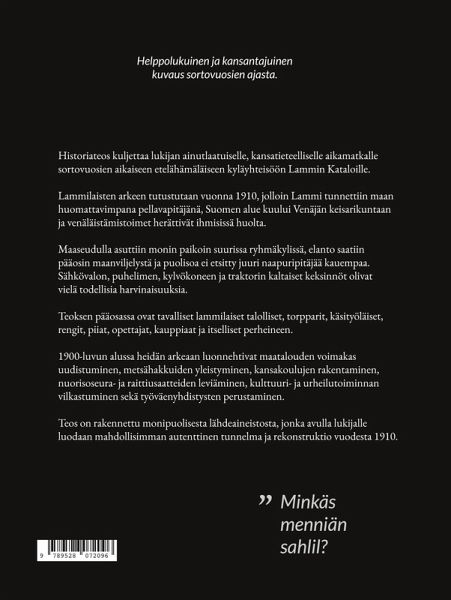 Historiateos kuljettaa lukijan ainutlaatuiselle, kansatieteelliselle aikamatkalle sortovuosien aikaiseen etelähämäläiseen kyläyhteisöön Lammin Kataloille. Lammilaisten arkeen tutustutaan vuonna 1910, jolloin Lammi tunnettiin maan huomattavimpana pellavapitäjänä, Suomen alue kuului Venäjän keisarikuntaan ja venäläistämistoimet herättivät ihmisissä huolta. Maaseudulla asuttiin monin paikoin vielä suurissa ryhmäkylissä, elanto saatiin pääosin maanviljelystä ja puolisoa ei etsitty juuri naapuripitäjää kauempaa. Sähkövalon, puhelimen, kylvökoneen ja traktorin kaltaiset keksinnöt olivat vielä todellisia harvinaisuuksia. Teoksen pääosassa ovat tavalliset lammilaiset talolliset, torpparit, käsityöläiset, rengit, piiat, opettajat, kauppiaat, itselliset ja mökkiläiset perheineen. 1900-luvun alussa heidän arkeaan luonnehtivat maatalouden voimakas uudistuminen, metsähakkuiden yleistyminen, kansakoulujen rakentaminen, nuorisoseura- ja raittiusaatteiden leviäminen, kulttuuri- ja urheilutoiminnan vilkastuminen sekä työväenyhdistysten perustaminen. Venäjän sortotoimenpiteet, eduskuntauudistus ja puoluepolitikoinnin kiivastuminen vaikuttivat paljon myös tavallisten hämäläisten arkeen. Elämä maaseudulla oli ollut pitkään varsin yhdenvertaista, jolloin kylänraitilla ei tehty suurta eroa isäntäväkien ja työväestön välillä. Vuoden 1905 suurlakko, poliittisten yhdistysten perustamiset ja puoluelehtien kirjoitukset lietsoivat kansan jakautumista kahteen osaan. Monet entiset ystävät alkoivat nähdä toisissaan vihamiehiä. Teos on rakennettu monipuolisesta lähdeaineistosta, jonka avulla lukijalle luodaan mahdollisimman autenttinen tunnelma ja rekonstruktio vuodesta 1910. Tyylikeinona käytetään ns. historiallista preesensmuotoa, jolloin vuoden 1910 tilannetta tarkastellaan ikään kuin dramatisoiden nykyhetken silminnäkijän näkökulmasta.