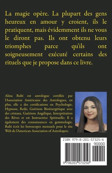 La pratique de la magie amoureuse existe depuis des temps immémoriaux. Les sorcières, les gnostiques, les chamans et les occultistes ont tous laissé derrière eux un riche héritage de rituels et de sagesse qui continue à nous inspirer aujourd'hui. L'amour est l'énergie la plus puissante de l'univers et, lorsque nous apprenons à le canaliser, son pouvoir de transformation peut illuminer tous les aspects de notre vie. Parfois, il suffit d'une touche de magie pour réveiller ou renforcer cette énergie en nous et autour de nous. Dans ce livre, vous trouverez une collection des rituels, des sorts, des bains et des charmes les plus efficaces pour vous aider à attirer l'amour, à restaurer l'harmonie, à raviver la passion ou à entretenir la flamme de l'affection. Que votre objectif soit d'approfondir le bonheur avec votre partenaire ou d'appeler votre âme sur, ces pages vous guideront pour vous connecter à la force invisible qui circule dans l'univers et vous ouvrir aux bénédictions que vous méritez vraiment.